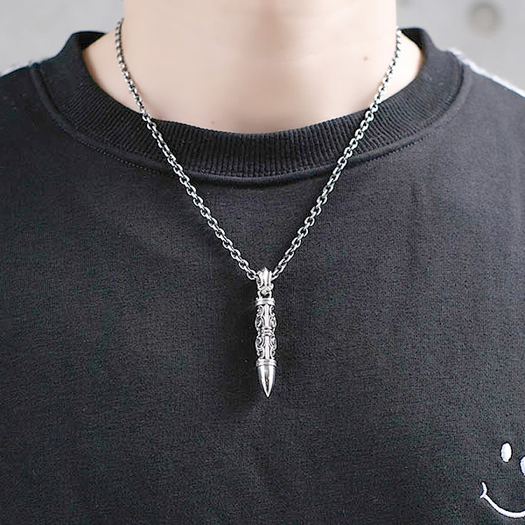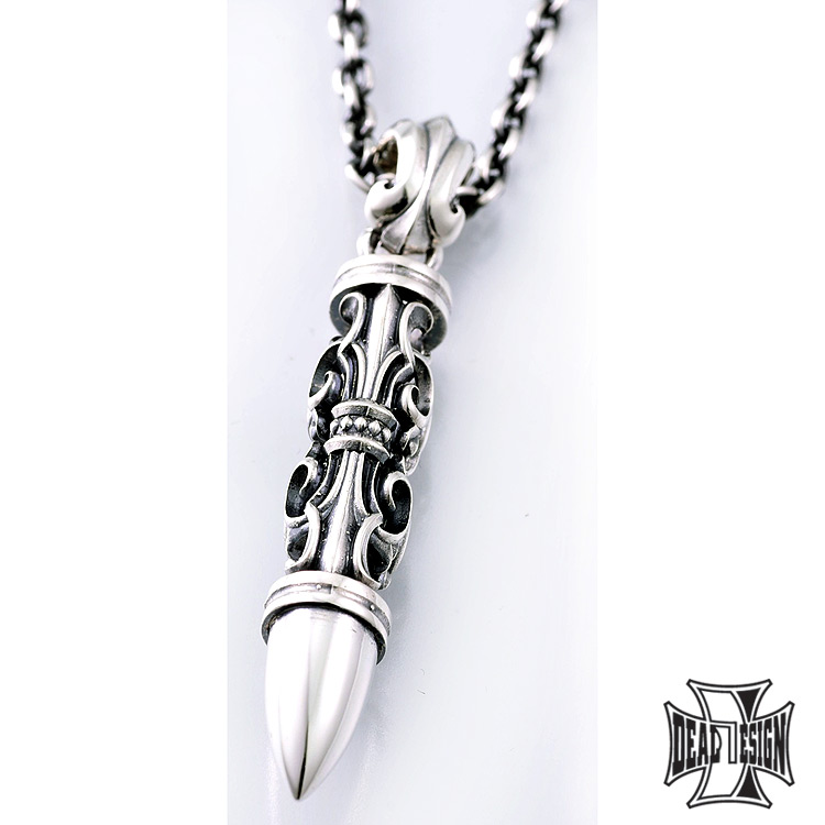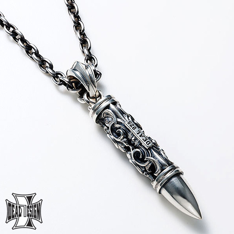 ゲートチューブのデザインをストレートに活かしたライフル弾型のシルバーペンダントトップ。