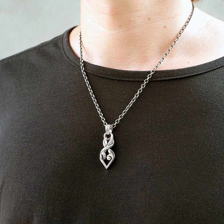 フィッシュフックをベースに、ハートやスネークスキンのディティールを盛り込んだトップ。