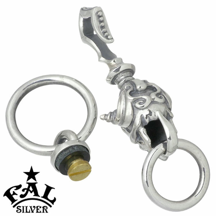 上部の径の大きい丸カン部との組み合わせで、ウォレットチェーンの2本着けやキーチェーンなどとの組み合わせが可能となります。