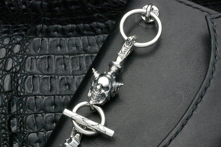 ピエロスカルスタイルシリーズのウォレットチェーンやキーチェーンとの組み合わせでデザインが統一します。