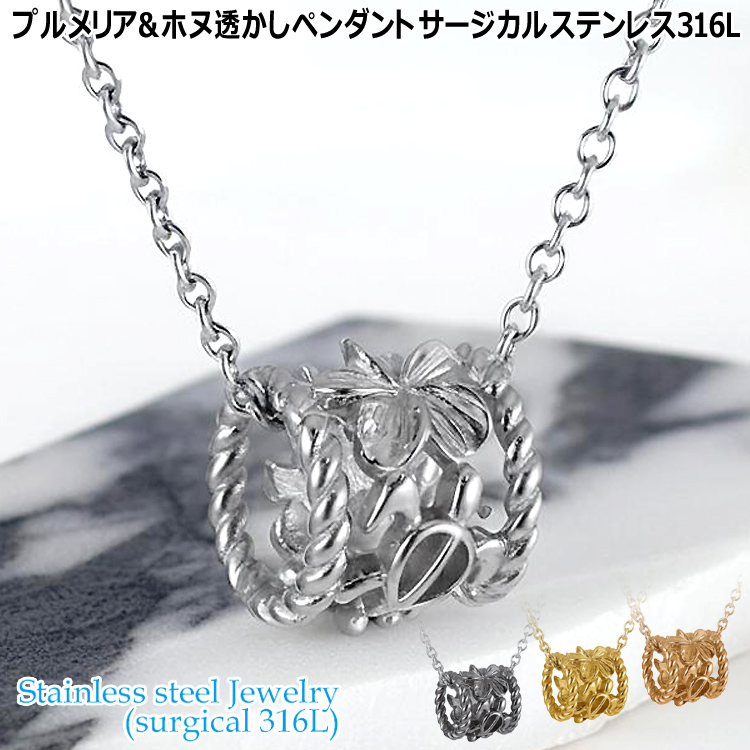 ハワイアンジュエリー プルメリア & ホヌ 透かし ペンダント サージカルステンレス316L 金属アレルギーフリー 記念日 医療用ステンレス製 GPSS1593(商品番号:GPSS1593)