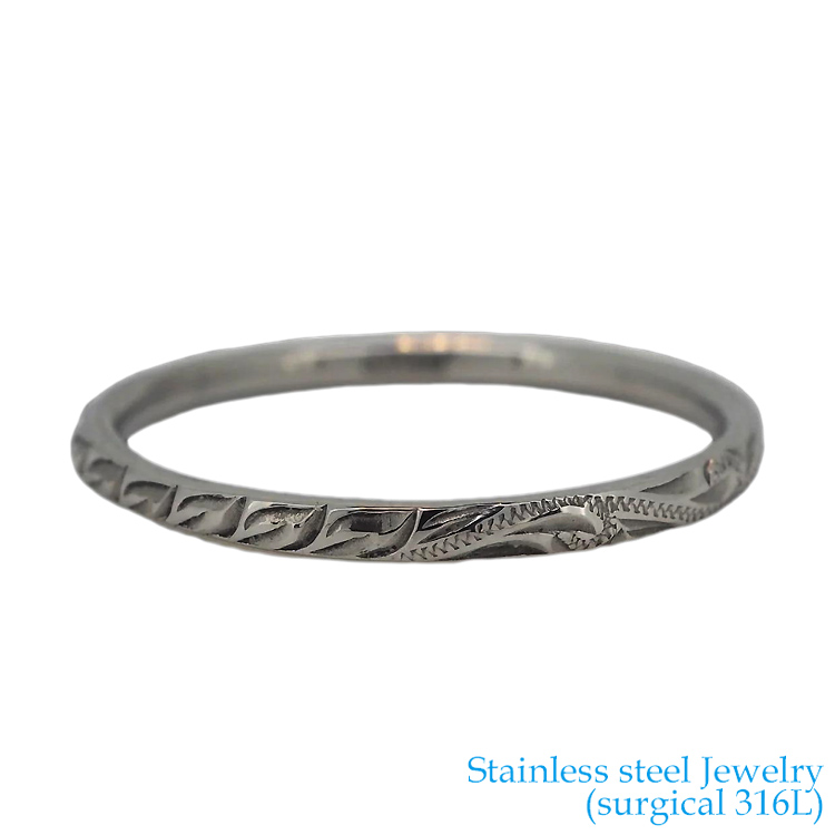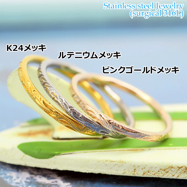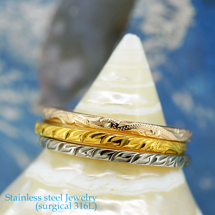 ハワイアンジュエリー スクロール×マイレ 2mm幅 リング 指輪 3号~25号 サージカルステンレス316L 金属アレルギーフリー 記念日 医療用ステンレス製 GRSS8003R(商品番号:GRSS8003R)