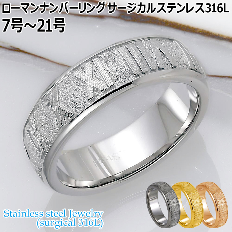 ハワイアンジュエリー ローマン ナンバー リング 指輪 7号~21号 サージカルステンレス316L 金属アレルギーフリー 記念日 医療用ステンレス製 GRSS931(商品番号:GRSS931)