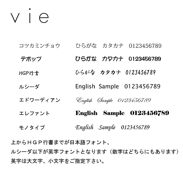 ●書体は【筆記体】か【ブロック体】のいずれかをお選びください。